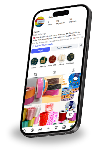 Acompanhe a Fidepla nas redes sociais e fique por dentro de novidades, lançamentos, inspirações e aplicações reais dos nossos produtos. Nosso conteúdo é pensado para aproximar a marca do dia a dia dos clientes, trazendo ideias, tendências e tudo o que acontece no universo das fitas, fitilhos e embalagens decorativas.
